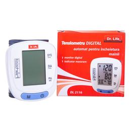 Tensiometru pentru Incheietura Mainii Dr. Life: dispozitiv medical de masurare a tensiunii arteriale la nivelul incheieturii mainii, destinat persoanelor adulte, ideal atat pentru uz profesional, in unitati medicale, cat si la domiciliu. Asigura rezultate rapide, de inalta acuratete (+/- 3 mmHg), pentru valori de la 0 la 300 mmHg. Permite memorarea ultimelor 120 de masuratori si dispune de un ecran de afisaj de mari dimensiuni ce ofera o lizibilitate perfecta. Este prevazut cu functie de oprire automata dupa 1 minut de inactivitate. Functioneaza cu 2 baterii care sunt incluse, iar manseta este conceputa pentru o minima solicitare a vaselor de sange.