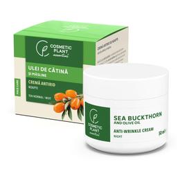 Crema Antirid de Noapte cu Ulei de Catina si Masline Cosmetic Plant, 50ml: crema pentru ingrijirea tenului normal sau mixt, imbogatita cu ulei de catina cu un complex vitaminizant (A, D, E, F) ce ofera multiple beneficii: hraneste intens pielea, stimuleaza regenerarea acesteia in timpul noptii si atenueaza si previne eficient semnele de imbatranire. In plus, uleiul de masline si vitaminele A, E si B5 ajuta la hidratarea optima si de lunga durata a pielii, completand efectul antirid si lasand-o neteda, catifelata si plina de luminozitate.
