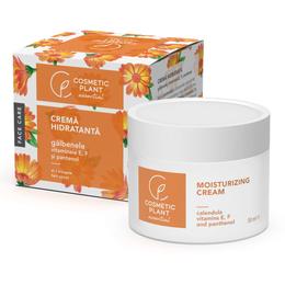 Crema Hidratanta cu Galbenele Cosmetic Plant, 50ml: crema pentru ingrijirea zilnica a tenului uscat, cu o formula imbogatita cu pantenol, vitaminele A si E si extract de galbenele, ce ofera pielii o hidratare optima, o hranesc, o fortifica si ii confera elasticitate, catifelare si un aspect neted si luminos. Contine filtre solare ce protejeaza impotriva imbatranirii premature si a altor efecte negative ale radiatiilor UVA/UVB.