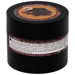 Unt de Corp Chocolate Dream Herbagen, 150ml: unt de corp cu o formula cu 95% ingrediente de origine naturala, ce amelioreaza aspectul pielii si o protejeaza impotriva actiunii nocive a factorilor de mediu (radiatii UV, vant, frig puternic, variatii de temperatura). Contine unt de shea si de cacao, precum si ulei de masline si pulbere de cacao ce hidrateaza intens si hranesc epiderma, stimuleaza regenerarea acesteia si previne imbatranirea cutanata prematura datorita antioxidantilor, vitaminelor (A, E) si mineralelor (calciu, magneziu, fier, potasiu) din compozitie, avand efecte benefice in combaterea vergeturilor si a celulitei. Aroma delicioasa si senzuala de ciocolata si continutul de serotonina si endorfine relaxeaza intregul organism, conferind o stare de bine si lasand pielea subtil parfumata. Fara parabeni, coloranti, siliconi sau uleiuri minerale.