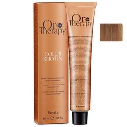 Vopsea Demi-permanenta Fanola Oro Therapy Color Keratin 8.14 Gianduia, 100ml: vopsea cu textura cremoasa si o formula imbogatita cu keratina, aur cu proprietati iluminatoare si ulei de argan hranitor, ce ofera parului o ingrijire optima in timpul vopsirii, protejandu-l eficient si lasandu-l matasos, hidratat si stralucitor. Asigura patrunderea si sigilarea pigmentilor de culoare in structura fibrei capilare pentru a conferi parului nuante intense, luminoase, vibrante si de lunga durata, fara a afecta integritatea scalpului sau a firelor.