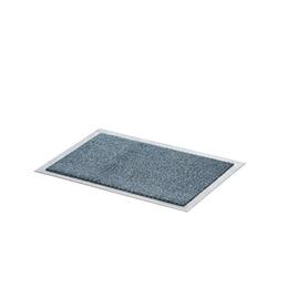 Preș de intrare cu aspect velurat din fire de polipropilenă pe suport de vinil cu o bordură de aproximativ 3 cm, care scade riscul de împiedicare.