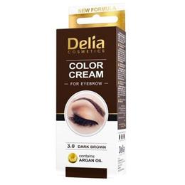Vopsea pentru Sprancene cu Ulei de Argan Delia Cosmetics, nuanta 3.0 Maro Inchis, 15ml: crema coloranta pentru vopsirea sprancenelor, cu o formula delicata, imbogatita cu ulei de argan, ce ofera firelor de par o ingrijire optima in timp ce depoziteaza pigmentii de culoare. Ajuta la definirea si evidentierea sprancenelor, eliminand micile imperfectiuni ale acestora. Este usor de aplicat, asigurand obtinerea unei culori naturale de lunga durata (pana la 14 zile). Continutul flaconului este suficient pentru 15 aplicari.