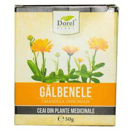 Ceai de Galbenele Dorel Plant, 50g: galbenelele sunt utilizate de secole in medicina naturista, avand proprietati terapeutice deosebite si fiind bogate in antioxidanti ce protejeaza organismul impotriva stresului oxidativ generat de radicalii liberi. Ceaiul din aceasta planta ajuta la functionarea optima a sistemului digestiv, protejand mucoasa gastrica si reducand spasmele intestinale. Are efect sedativ, fiind indicat in combaterea insomniilor si a simptomelor stresului. Aplicat extern, amelioreaza diverse afectiuni dermatologice (eczeme, arsuri, disconfort la nivelul pielii, mucoaselor anale si vaginale si al venelor hemoroidale, intepaturi de tantari), precum si disconfortul la nivelul cavitatii bucale si al faringelui.