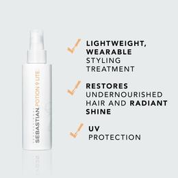Spray Tratament de Styling cu Textura Lejera - Sebastian Professional Potion 9 Lite Treatment, 150 ml: sprayul profesional Potion 9 Lite de la Sebastian Professional imbina beneficiile unui tratament de ingrijire cu efectele unui produs de styling. Va ofera hidratare, stralucire, protectie UV si manevrabilitate, fara sa incarce parul. Formula sa lejera este ideala pentru parul normal spre subtire, oferindu-i flexibilitate si un aspect revitalizat, natural.