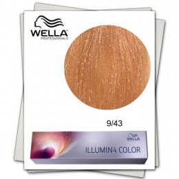 Vopsea Permanenta - Wella Professionals Illumina Color Nuanta 9/43 blond luminos aramiu auriu: formula profesionala permanenta cu o textura cremoasa delicata si complexa ce garanteaza atat hranirea si ingrijirea parului, cat si o acoperire a firelor albe de pana la 100%, datorita tehnologiei Microlight, care ofera o protectie excelenta stratului cuticular, pastrand limpezimea nuantei, ceea ce determina trecerea luminii prin fibra capilara si reflexia intregului spectrului cromatic. Acest produs este ideal pentru culori clare si intense, pline de lumina si uniformitate, un aspect natural, tanar, fermecator.