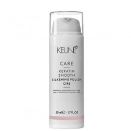 Crema Keune Care Keratin Smooth Silkening Polish Ultimate Control 50 ml: crema cu factor de fixare slab, ideala pentru disciplinarea firelor de par rebele, ce ofera o stralucire maxima. Ofera o definire perfecta a buclelor sau un finisaj perfect drept parului rebel.