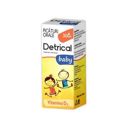 Detrical D3 Baby Zdrovit, 30 ml: supliment alimentar recomandat pentru functionarea normala a sistemului imunitar, mentinerea sistemului osos si mentinerea functiei normale a sistemului muscular. Produsul este destinat nou-nascutilor si copiilor.