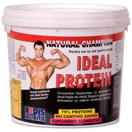 Ideal Protein Redis, aroma de ciocolata, 2000g: concentrat hiperproteic cu absorbtie optima, in doua trepte de viteza, recomandat pentru persoanele ce doresc sa obtina masa musculara. Formula sa eficienta contine 2 surse de proteina - una cu absorbtie rapida (izolat proteic din soia 75%) si una cu absorbtie lenta (concentrat proteic din lapte 25%), pentru a asigura un flux constant de aminoacizi in sange pe o durata de 4-6 ore.