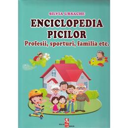 Enciclopedia picilor: Profesii, sporturi, familia - Silvia Ursache, editura Silvius Libris: Enciclopedia are paginile cartonate si prezinta, in culori vii: profesii si meserii • sporturi • corpul uman • familia mea • programul si activitatile zilei • emotii si sentimente