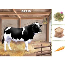 Animale domestice (mapa), editura Dorinta: Observa animalul si hrana lui. Stabileste corespondete intre imaginea animalului domestic si denumirea diferitelor parti ale corpului. Decupeaza animalul si timbrele care reprezinta hrana lui si lipeste-le pe fisa a doua in locurile potrivite. Fisa a doua contine ilustratia cu locul unde traieste animalul.