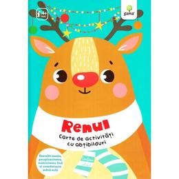 Renul. Carte de activitati cu abtibilduri iti ajuta copilul sa-si dezvolte atentia, perspicacitatea, motricitatea fina si coordonarea mana-ochi in timp ce se distreaza alaturi de cele mai simpatice personaje. Astfel, sarbatorile de iarna vor fi un prilej nu doar de bucurie, ci si de invatare prin joc! Cartea include abtibilduri si un colind de Craciun.