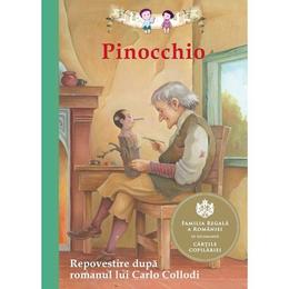 Pinocchio. Repovestire dupa romanul lui Carlo Collodi, editura Curtea Veche: In casa batranului mester Geppetto domneste o saracie lucie — singura sa bogatie este imaginatia. Folosindu-se de acest dar nepretuit, Geppetto ciopleste dintr-o simpla bucata de lemn o papusa care sa-l ajute sa dobandeasca faima si bani — Pinocchio. Ca prin farmec, marioneta prinde viata, iar Geppetto intelege ca-n loc de un slujitor s-a ales cu un baiat in toata regula, care, ca orice prichindel, face felurite obraznicii: isi ia tatal peste picior, ii joaca tot felul de feste si spune minciuni cu nemiluita — care-i fac nasul sa creasca. Mai mult, in loc sa mearga la scoala, fuge de-acasa si se inhaiteaza cu doi talhari, Vulpoiul si Motanul.