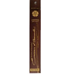 Betisoare Parfumate Cinnamon Maroma, 10buc: Betisoare realizate manual din lemn de bambus netratat chimic, praf de lemn si rasina vegetala naturala, ce contin uleiuri esentiale 100% naturale. Acestea au rolul de a aromatiza incapera, oferind un parfum placut si intens de uleiuri esentiale de scortisoara, cuisoare si lamaie. Betisoarele pot induce o stare de relaxare si calmare ce ajuta la echilibrarea energetica a organismului. Pachetul ajuta la mentinerea unui mediu inconjurator sanatos, ambalajul acestuia fiind realizat din hartie reciclata. De asemena, pachetul contine 10 betisoare parfumate.