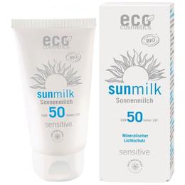 Lapte de Plaja Bio pentru Piele Sensibila cu Ulei de Zmeura SPF 50 Eco Cosmetics, 75ml: Produs ce contine ingrediente naturale, avand rolul de a proteja pielea de razele nocive ale soarelui. Formula acestuia se absoarbe rapid in piele, nu lasa urme albe si este potrivita atat pentru ten, cat si pentru corp. Imbogatit cu ulei organic de rodie, laptele are proprietati nutritive, previne imbatranirea prematura a pielii si ii ofera acesteia elasticitate. Continutul de ulei organic de zmeura sporeste hidratarea pielii si are un usor factor de protectie. Prezenta vitaminei A are efect antioxidant si de protectie celulara. Produsul nu contine alcool sau ingrediente agresive, fiind potrivit pentru toate tipurile de piele, chiar si pentru cea sensibila sau pentru tenul mixt. De asemnea, acesta nu contine filtre solare chimice, alcool, conservanti, coloranti, parfumuri sintetice, PEG, SLS, parabeni, petroleum, parafina, silicon sau organisme modificate genetic.
