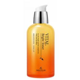 Toner pentru Uniformizare Culoare si Luminozitate The Skin House Vital Bright, 130 ml: toner pentru uniformizare culoare si luminozitate cu extracte din lamaie, dud alb, niacinamida si acid hialuronic. Este potrivit pentru toate tipurile de ten, in special cel hiperpigmentat, fara luminozitate. Ajuta la eliminarea impuritatilor si urmelor de machiaj, in timp ce echilibreaza PH-ul pielii. Vitaminele din extractele naturale din fructe contribuie la uniformizarea culorii si cresterea luminozitatii tenului fara sa irite. De asemenea, acest produs hidrateaza pielea si nu o lasa uscata.