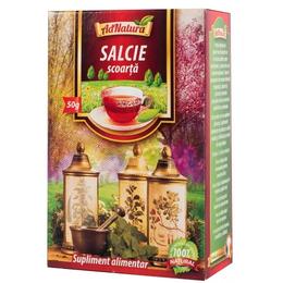 Ceai de Salcie Scoarta AdNatura, 50 g: produs natural cu efect usor sedativ nervos si cicatrizant. Se foloseste ca adjuvant in afectiuni reumatice, diaree, hemoragii, stari febrile, nevralgii gutoase, raceli, stari depresive, insomnii. Produsul are actiune antireumatismala, analgezica, febrifuga si astringenta. De asemenea, acest produs ajuta la mentinerea echilibrului hormonal la femei.