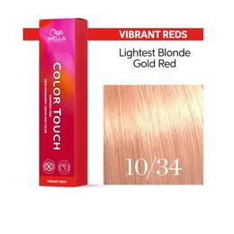 Vopsea Demi-permanenta - Wella Professionals Color Touch Vibrant Reds Nuanta 10/34 Blond Deschis/ Rosu Auriu: Vopsea demi-permanenta care prin ingredientele sale active lasa un par sanatos si ingrijit, plin de o stralucire uimitoare si prospetime naturala, cu rezultate multi-dimensionale de culoare, oferind reflexe de lumina diferite, pline de viata si irezistibile. Vibrant Reds, ca parte a liniei Color Touch a fost conceput pentru a se completa cu tonurile perfecte Koleston, oferind nuante de par rosii, pline de viata. Ofera acoperire pana la 50 % a firelor de par alb si rezista pana la 20 – 24 de spalari.