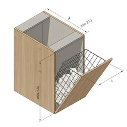 Cosul pentru rufe murdare este o solutie eleganta si functionala, conceputa pentru a fi integrata discret in mobilier. Realizat din sarma metalica alba, ofera rezistenta, stabilitate si o buna ventilatie a rufelor, prevenind acumularea mirosurilor neplacute. Forma sa inclinata permite o deschidere usoara si acces rapid la interior, fiind ideal pentru montaj pe usa frontala a unui corp de mobilier cu mecanism rabatabil. Designul sau minimalist si finisajul curat il fac potrivit pentru bai moderne, dressinguri sau spatii compacte unde ordinea si eficienta sunt esentiale.