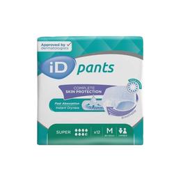 Chilot pentru Incontinenta Adulti Super ID Expert marime M (80- 120 cm), 12 buc: chilot cu un nivel ridicat de absorbtie, destinat persoanelor ce sufera de incontinenta urinara, oferindu-le confort, discretie, independenta si siguranta. Este la fel de usor de purtat si de indepartat ca oricare alta piesa de lenjerie intima obisnuita, fiind ideal si pentru utilizarea in timpul noptii. Fluidele sunt absorbite rapid si retinute in interiorul materialului ce impiedica senzatia neplacuta de umiditate, iar benzile speciale previn scurgerile laterale. Amelioreaza mirosurile neplacute, se fixeaza usor si sigur, iar portiunile elasticizate ce asigura adaptarea perfecta la forma corpului precum si stratul intern din bumbac, ofera un confort sporit.