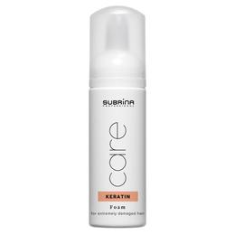 Tratament Spuma cu Cheratina pentru Par Foarte Deteriorat - Subrina Professional Care Keratin Foam, 150 ml: tratament spuma pentru parul extrem de uscat, procesat chimic si deteriorat. Infuzeaza firul de par cu o doza puternica de cheratina, oferindu-i revitalizare si prevenind ruperea. Contine proteine din grau ce mentin elasticitatea fibrei capilare si cheratina ce repara in profunzime.