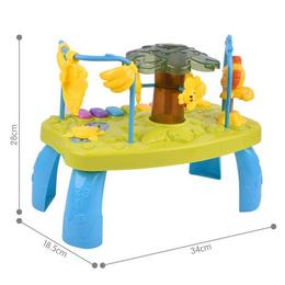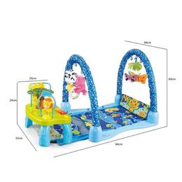 Caracteristici: materiale de foarte buna calitate care confera confort maxim bebelusului; materiale non-toxice si antialergice; datorita formelor si culorilor vii, copilul dvs va fi in permanenta binedispus; dotata cu bara de jucarii; multitudinea de culori ajuta la diferentierea formelor si a culorilor coordonarii; salteluta ajuta la dezvoltarea functiilor motorii; poate fi transportat cu usurinta in excursii sau calatorii masuta cu activitati cu mini pian, sunete,melodii, lumini si jucarii atasate pentru a functiona, masuta are nevoie de 3 baterii 1.5 V AA, neincluse in pachet.