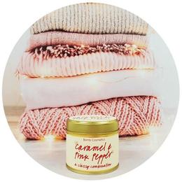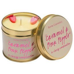 Lumanare Caramel & Pink Pepper, Bomb Cosmetics. Caramel si piper roz; o combinatie clasica! Zahar si condimente si toate lucrurile frumoase! Parfumul delicios se deschide cu o nota stralucitoare de bergamota stratificata cu note de fructe si un acord indulgent de caramel, legat de piper roz.