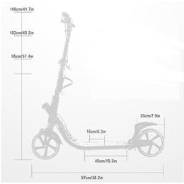Este trotineta ideala pentru aduti si copii cu varsta mai mare de 10 ani. Ghidonul este reglabil pe inaltime in trei pozitii, intre 97 si 104 cm. Latimea ghidonului, de 380 mm cu manerele din cauciuc fac ca manevrarea aceei trotinete sa fie extrem de facila. Platforma cu suprafata mare Dimensiunea platformei este impresionanta, astfel incat sa stai cat mai comod atunci cand ai plecat la o plimbare. Suporta o greutate maxima de 100 kg.