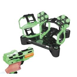 Setul include un stand cu o roata care poate fi rotita, pe care se pot pune cele 6 tinte incluse in pachet si pe care trebuie sa le nimeresti, o pusca si 12 "gloante" de spuma plus o magazie de gloante atasabila, permitand astfel folosirea munitiei rapid.