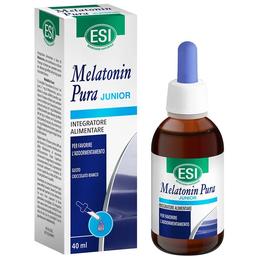 Melatonina Pura Junior 1mg ESI, 40 ml: supliment alimentar pe baza de melatonina, pentru copii. Ajuta la reglarea tulburarilor de somn si reduce timpul necesar pentru a adormi. De asemenea, este recomandata si in cazul adaptarii la schimbarile de fus orar, in timpul calatoriilor.