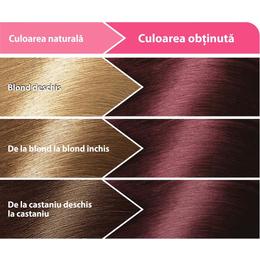 Obs: in functie de culoarea initiala si tratamentele aplicate anterior parului (decolorare, permanent, etc.), precum si de durata de aplicare a vopselei, rezultatul poate diferi cu 1-2 nuante fata de catalog. Culoarea parului din fotografia de pe ambalaj nu constituie un criteriu de selectie a culorii. Pentru o alegere cat mai corecta a nuantei, se recomanda consultarea catalogului de culori si indicatiile de pe spatele acestuia. Nu se recomanda spalarea parului inainte de vopsire. Vopseaua nu se aplica pe parul tratat in ziua vopsirii cu gel, fixativ, ulei sau orice alt produs de ingrijire.