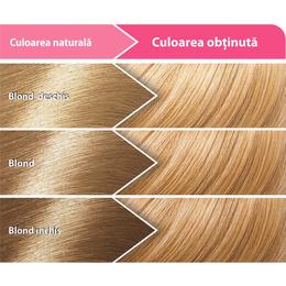 Obs: in functie de culoarea initiala si tratamentele aplicate anterior parului (decolorare, permanent, etc.), precum si de durata de aplicare a vopselei, rezultatul poate diferi cu 1-2 nuante fata de catalog. Culoarea parului din fotografia de pe ambalaj nu constituie un criteriu de selectie a culorii. Pentru o alegere cat mai corecta a nuantei, se recomanda consultarea catalogului de culori si indicatiile de pe spatele acestuia. Nu se recomanda spalarea parului inainte de vopsire. Vopseaua nu se aplica pe parul tratat in ziua vopsirii cu gel, fixativ, ulei sau orice alt produs de ingrijire.