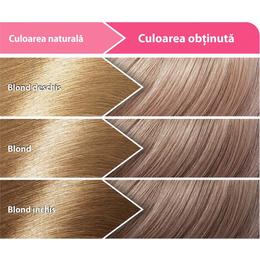 Obs: in functie de culoarea initiala si tratamentele aplicate anterior parului (decolorare, permanent, etc.), precum si de durata de aplicare a vopselei, rezultatul poate diferi cu 1-2 nuante fata de catalog. Culoarea parului din fotografia de pe ambalaj nu constituie un criteriu de selectie a culorii. Pentru o alegere cat mai corecta a nuantei, se recomanda consultarea catalogului de culori si indicatiile de pe spatele acestuia. Nu se recomanda spalarea parului inainte de vopsire. Vopseaua nu se aplica pe parul tratat in ziua vopsirii cu gel, fixativ, ulei sau orice alt produs de ingrijire.