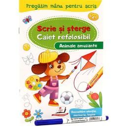 Scrie si sterge. animale amuzante - Caiet refolosibil + whiteboard marker: