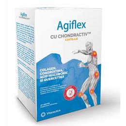 Agiflex este un complex inovativ ce are in compozitie :complexul patentat Chondractiv, collagen hidrolizat tip 2 , acid hyaluronic, condroitina, quercetina , naringina si vitamina C.