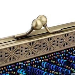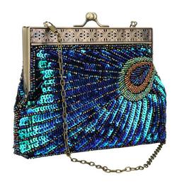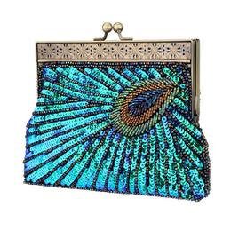 Din paiete multicolore imitand coada de păun, acest clutch vintage este ideal pentru multiple ocazii ( nunti, spectacole, cocktail-uri, serate), completand orice ținută și răspunzand tuturor exigentelor.