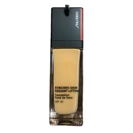 Fond de Ten Radiant - Shiseido Synchro Skin Radiant Lifting Fundation SPF 30, nuanta 340 Oak, 30 ml: fond de ten pentru iluminare cu efect de lifting. Hidrateaza si reduce vizibilitatea ridurilor si a liniilor fine, oferind stralucire de lunga durata. Uniformizeaza nuanta tenului, avand o textura foarte lejera. Este rezistent la apa si la transfer si asigura o acoperire medie. De asemenea, protejeaza impotriva radiatiilor UVA si UVB (SPF 30).