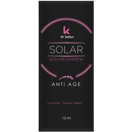 Plic Crema pentru Solar - Dr. Kelen Solar Anti-Age, 12 ml: crema pentru solar cu ingrediente ce amelioreaza imbatranirea prematura a pielii. Imbunatateste bronzul, putand fi folosita atat pentru corp cat si pentru fata si se absoarbe rapid. Are in compozitie vitamina E ce elimina radicalii liberi si previne deteriorarea celulara, seminte de struguri ce reduc imbatranirea pielii si ATP care ajuta la regenerarea tesutului epitelial. Nu contine conservanti sau coloranti. Crema este hipoalergenica, fiind potrivita si pentru pielea sensibila.
