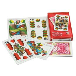 Pachetul de carti de joc unguresti contine un numar de 32 de carti, iar imaginile infatiseaza imagini din piesa de teatru Wilhelm Tell.