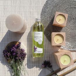 Ulei de Baie cu Lavanda si Lemn de Santal - KANU Nature Bath Oil Lavender Sandalwood, 250 ml: ulei de baie relaxant imbogatit cu uleiuri esentiale obtinute din lavanda si lemn de santal. Ofera proprietati benefice ale uleiurilor naturale si un parfum de lunga durata. Sunt suficiente doar cateva picaturi pentru ca pielea sa isi recapete stralucirea naturala si sa devina fina si catifelata. Hraneste, hidrateaza si regenereaza epiderma, lasand-o moale si neteda. De asemenea, lavanda are un efect calmant, iar uleiul de santal are un efect antibacterial.