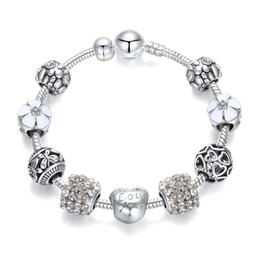 Bratara charm este un accesoriu chic care se potriveste atat tinutelor elegante cat si de zi cu zi. Aceasta este usor de accesorizat, are la baza alama si este placata cu argint.