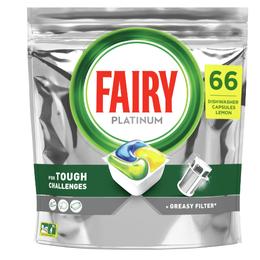 Detergent Capsule pentru Masina de Spalat Vase - Fairy Platinum, 66 capsule: capsule de detergent pentru masina de spalat vase. Au o formula speciala, cu triplu lichid, ce curata cele mai dificile urme de grasime, nefiind nevoie de pre-clatire. Capsulele contin enzime speciale, cu o putere mare de curatare. Lasa vasele stralucitor de curate, indeparteaza stratul de grasime si curata filtrul. Fairy este recomandat de producatorii de masini de spalat.