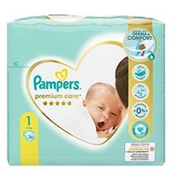 Scutece pentru Nou-nascuti - Pampers Premium Care New Baby, marimea 1 (2-5 kg), 26 buc: scutece moi si delicate pentru nou-nascuti. Dispun de un strat unic DermaComfort ce absoarbe umezeala si murdaria, tinandu-le la distanta de pielea sensibila a bebelusului. Sunt confectionate din materale atent selectate si foarte delicate. Se prind cu aripioare laterale flxibile si au o forma confortabila ce protejeaza zona ombilicala. Totodata, au un nucleu absorbant pentru o uscare rapida si protectie pana la 12 ore si mansete duble pentru zona picioarelor ce se muleaza perfect pe forma corpului, protejand imporiva scurgerilor. De asemenea, dispun de un indicator de umezeala pentru a sti exact atunci cand scutecul trebuie schimbat.