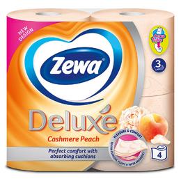 Hartie Igienica cu Parfum de Piersica 3 Straturi - Zewa Deluxe Cashmere Peach, 4 role: hartie igienica parfumata cu parfum de piersica. Hartia igienica este de o calitate superioara, cu 3 straturi, foarte rezistenta si absorbanta, pentru o senzatie de curatenie si incredere. Este creata din fibre de origine naturala, si este fina ca matasea. Este testata dermatologic, pentru a minimiza iritatiile pielii sensibile. In plus, tubul este reciclabil si biodegradabil, foarte usor de aruncat, chiar la toaleta dupa terminarea hartiei.