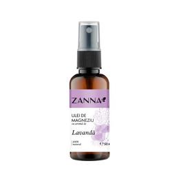 Ulei de Magneziu cu Lavanda Zanna, 50ml: ulei de magneziu cu lavanda. Uleiul de magneziu este cunoscut pentru benefiicile ce le aduce pielii. Ajuta la tratarea problemelor pielii, amelioreaza acneea, incetineste imbatranirea prematura a pielii, reduce excesul de sebum, combate stresul oxidativ si amelioreaza ridurile fine. In plus, promoveaza un somn odihnitor, amelioreaza simptomele de anxietate si reduce inflamatiile. Combinat cu uleiul de lavanda, amelioreaza durerile de cap, alunga stresul, imbunatateste circulatia si aspectul pielii.