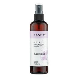 Ulei de Magneziu cu Lavanda Zanna, 150ml: ulei de magneziu cu lavanda. Uleiul de magneziu este cunoscut pentru benefiicile ce le aduce pielii. Ajuta la tratarea problemelor pielii, amelioreaza acneea, incetineste imbatranirea prematura a pielii, reduce excesul de sebum, combate stresul oxidativ si amelioreaza ridurile fine. In plus, promoveaza un somn odihnitor, amelioreaza simptomele de anxietate si reduce inflamatiile. Combinat cu uleiul de lavanda, amelioreaza durerile de cap, alunga stresul, imbunatateste circulatia si aspectul pielii.
