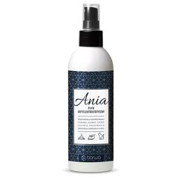 Spray lichid antistatic Ania, 250 ml, Barwa Cosmetics. Reduce eficient electricitatea statica din țesaturi, precum si din accesoriile de casa. Fluidul previne incarcarea statica a tuturor tipurilor de țesaturi, fibre naturale si sintetice, precum si a covoarelor si a tapiteriei auto. Faciliteaza indepartarea parului de animale si previne depunerea prafului pe carcasele echipamentelor electronice.