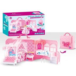Setul de joaca serveste drept camera pentru papusa si conține un loc de dormit cu un pat, o canapea, rafturi si o noptiera, precum si o zona cu o cada, o chiuveta si o oglinda. In plus, setul este echipat cu accesorii suplimentare care vor face jocul mult mai fermecator. Papusa nu este inclusa. La pliere, setul de joaca ia forma unei genti elegante. Fetita se va bucura cu siguranta de aceasta jucarie care ii va stimula dezvoltarea imaginatiei si a fanteziei.