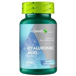 Acid Hialuronic Hyaluronic Acid 100mg Adams Supplements, 90 capsule: supliment alimentar ce ofera multiple beneficii tesuturilor organismului, datorita masei moleculare mici ce patrunde in tesut. Acidul hialuronic este un hidrant biologic al pielii, ce combate efectele imbatranirii premature a pielii, reda fermitatea si supletea pielii, combate degradarea celulara, contribuie la formarea colagenului, ajuta in recuperarea afectiunilor dermatologice si sprijina organismul in regenerarea tesuturilor. In plus, mareste mobilitatea articulatiilor si asigura un aspect tanar al pielii, parului si unghiilor.