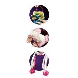 • 10 gheme de lana, 2 andrele de tricotat, 1 contor de randuri, 2 suporturi pentru ciucuri (pompon), 1 ac de plastic, instructiuni ilustrate